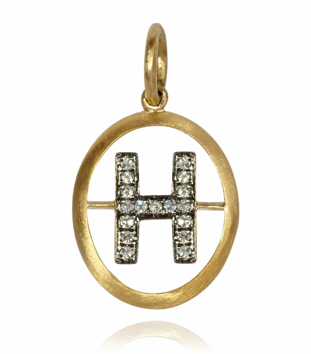 Annoushka’s cult Initial pendants have become a celebrity favourite worn by the likes of Rihanna, Gigi Hadid, Jennifer Lopez and Kristen Stewart. Crafted in 18-karat yellow gold with a soft satin finish, this letter ‘H’ sparkles with 0.07 carats of mico-pavé diamonds set in black rhodium. Suspend this sentimental piece on a fine chain and wear alone or alongside the initial of someone you love.