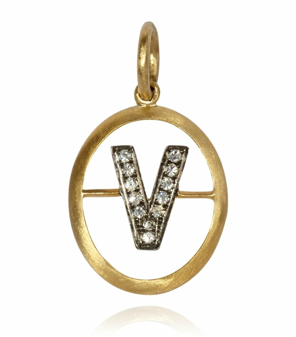 Annoushka’s cult Initial pendants have become a celebrity favourite worn by the likes of Rihanna, Gigi Hadid, Jennifer Lopez and Kristen Stewart. Crafted in 18-karat yellow gold with a soft satin finish, this letter ‘V’ sparkles with 0.07 carats of mico-pavé diamonds set in black rhodium. Suspend this sentimental piece on a fine chain and wear alone or alongside the initial of someone you love.