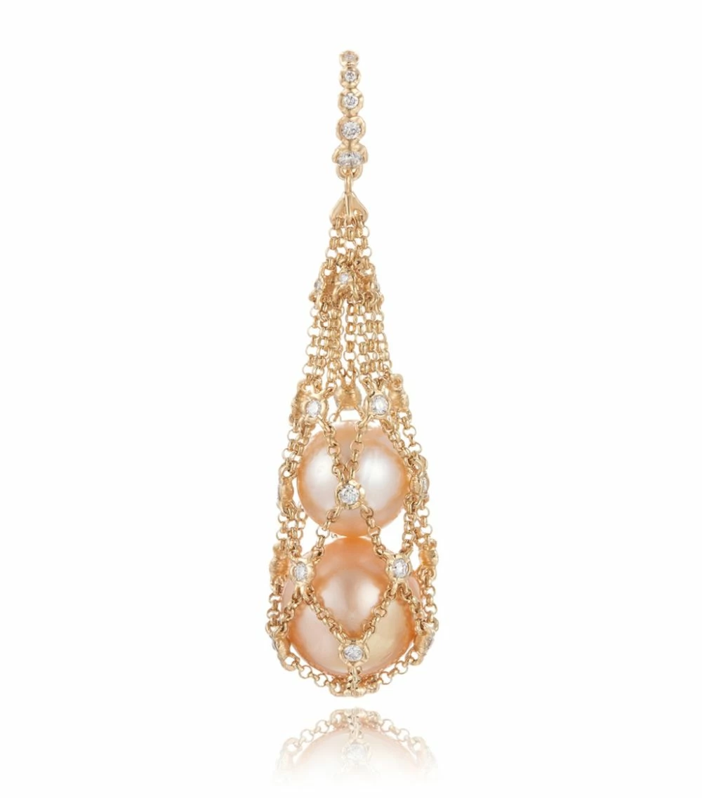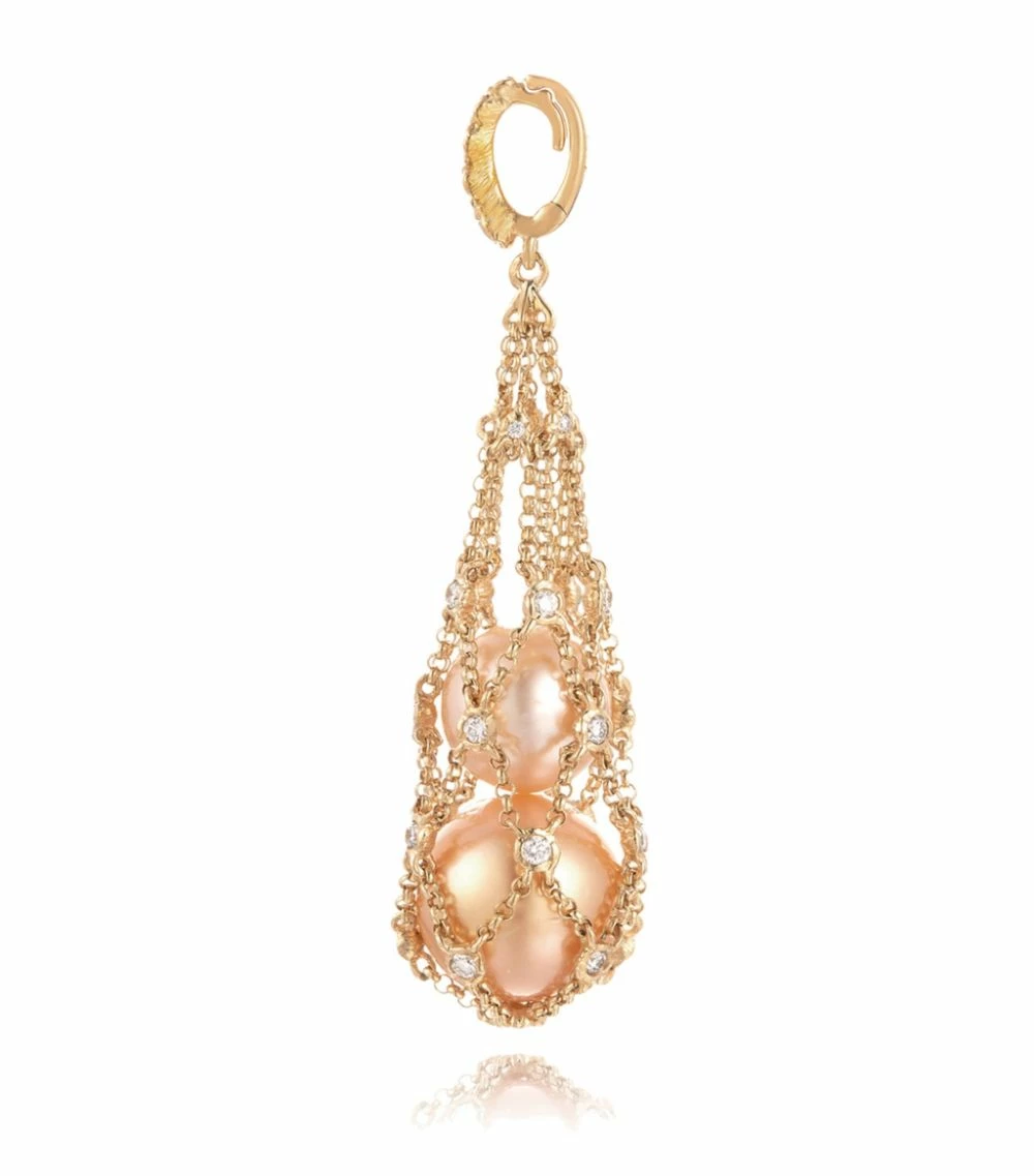 Forming part of the label’s ocean-inspired Lattice Hidden Reef collection, this exquisite Annoushka pendant is crafted from 18-karat yellow gold and illuminated with 33 precious gemstones. The charming, fishing net-shaped design features two striking golden pearls, sourced from an artisanal farm in the Philippines, and is finished with a bail clasp fitting so you can style it with a chain of your choosing.