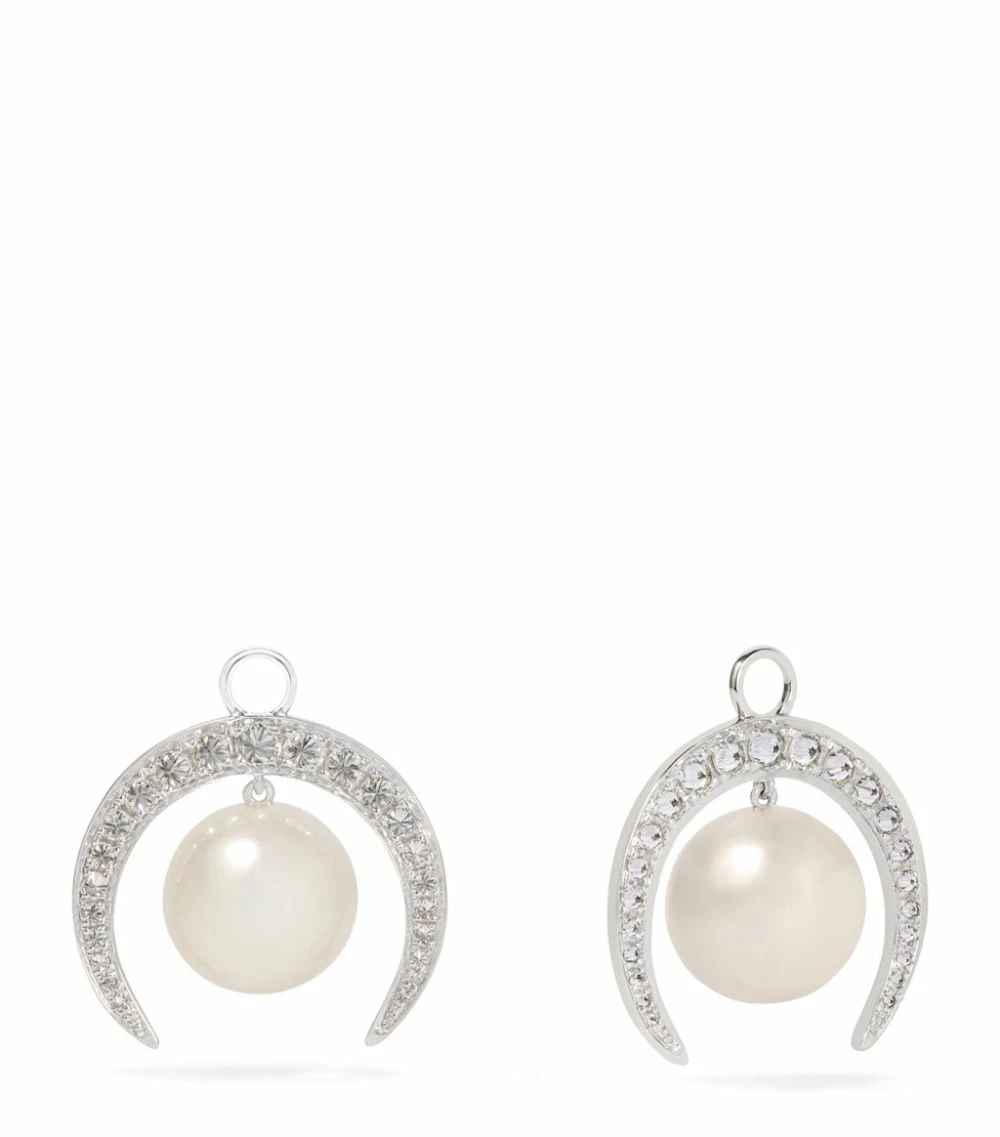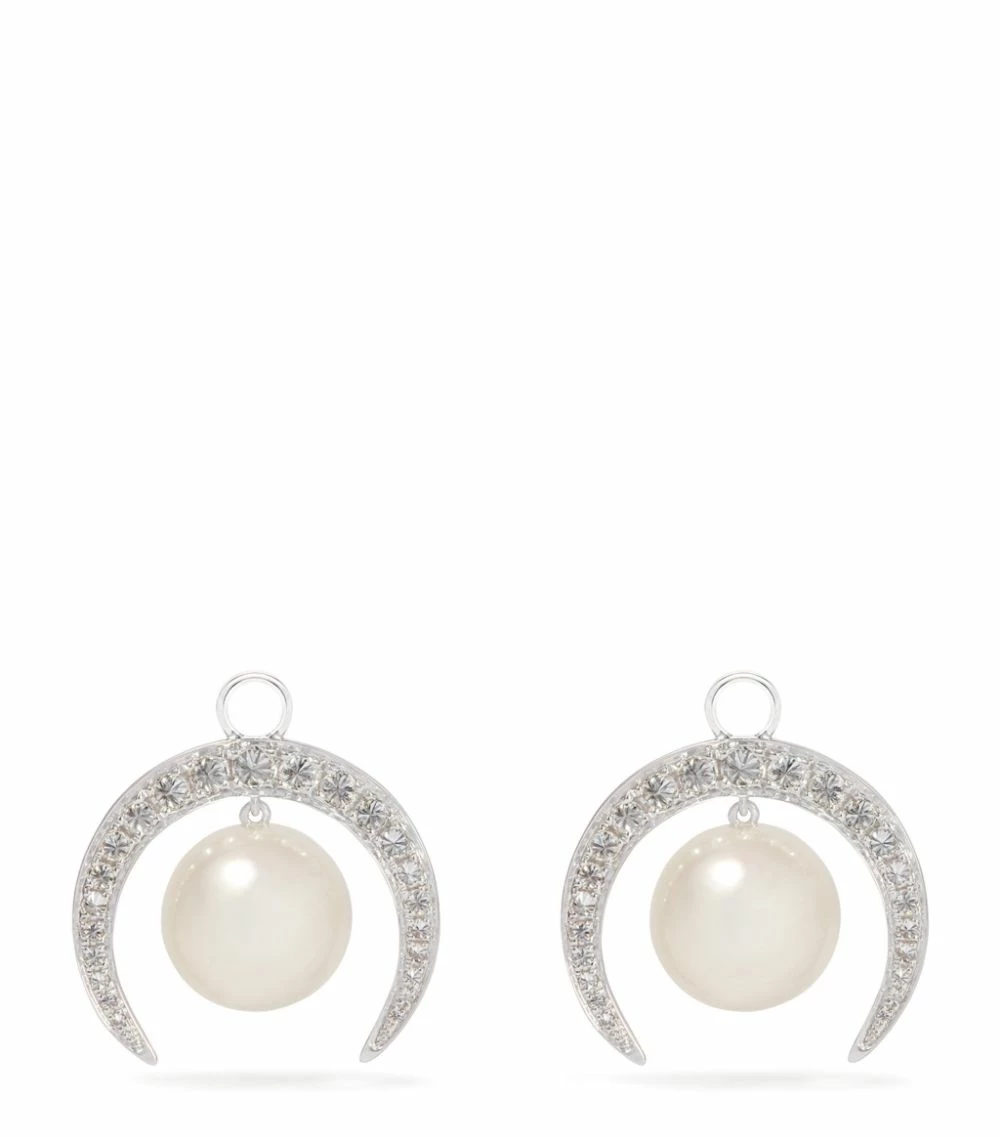London-based jeweller Annoushka continues to present modern ways to wear pearls with the exquisite Diamonds & Pearls collection. Inspired by an ancient starlit night sky, these interchangeable 18-karat white gold earrings feature 50 dazzling diamonds that are arranged in a crescent moon shape that then frames the dangling freshwater pearl.