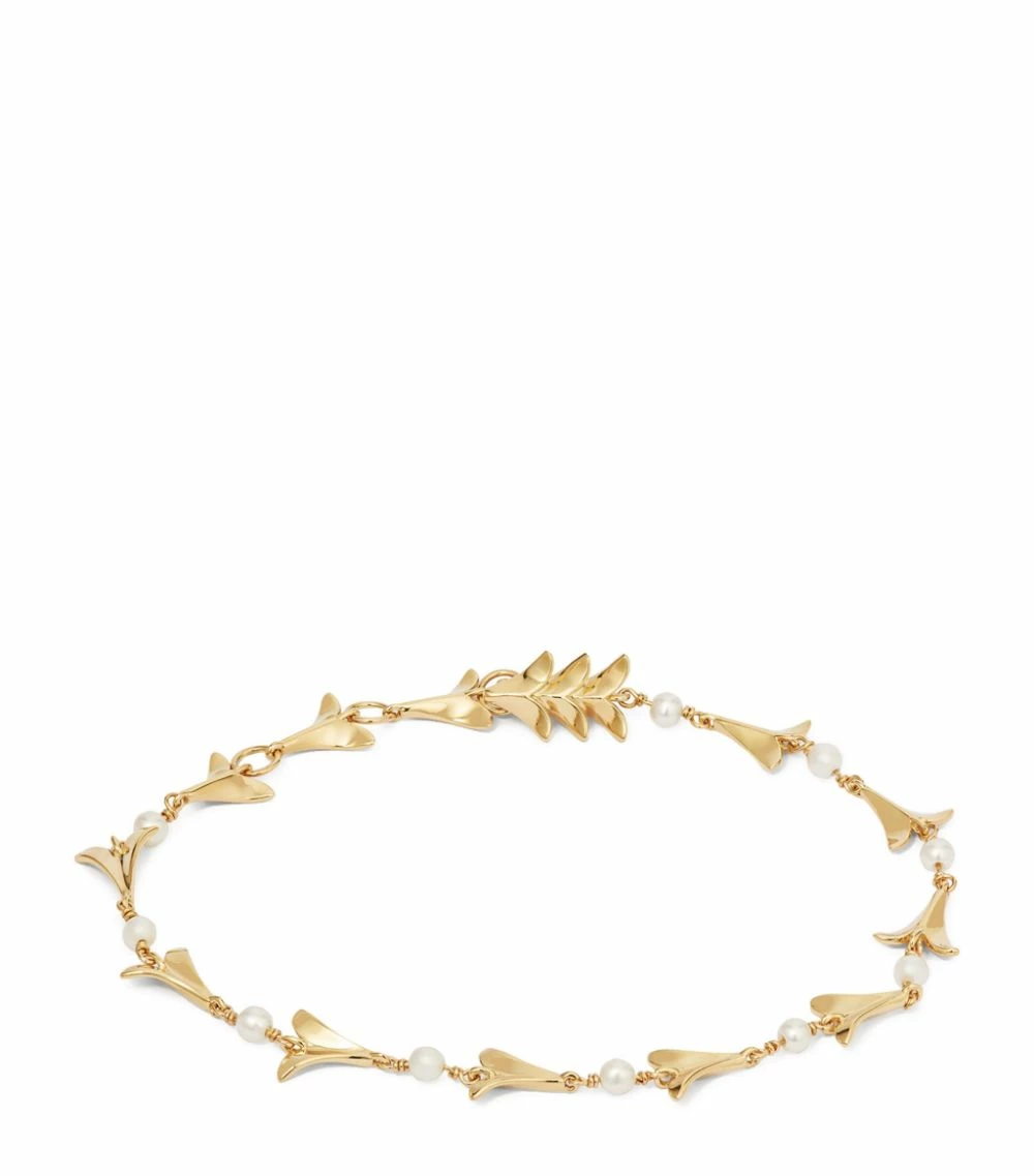 The latest collaboration between Annoushka and Alice Temperley is a timeless bridal collection inspired by British bluebells and a vintage dove trinket from Alice’s jewellery box. Crafted in recycled 18-karat yellow gold, this delicate bracelet is traced with miniature bells and freshwater pearls that proudly symbolise purity and hope – the perfect finishing touch to your wedding ensemble.