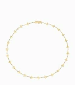 The latest collaboration between Annoushka and Alice Temperley is a timeless bridal collection inspired by British bluebells and a vintage dove trinket from Aliceβs jewellery box. Crafted in recycled 18-karat yellow gold, this delicate choker is traced with miniature bells and freshwater pearls that proudly symbolise purity and hope β the perfect finishing touch to your wedding ensemble.