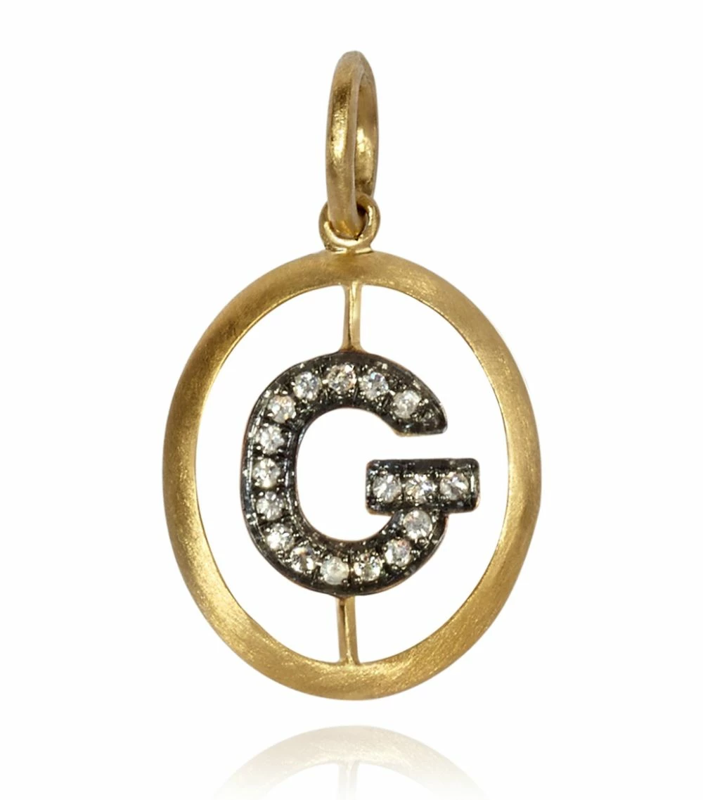 Annoushka’s cult Initial pendants have become a celebrity favourite worn by the likes of Rihanna, Gigi Hadid, Jennifer Lopez and Kristen Stewart. Crafted in 18-karat yellow gold with a soft satin finish, this letter ‘G’ sparkles with 0.07 carats of mico-pavé diamonds set in black rhodium. Suspend this sentimental piece on a fine chain and wear alone or alongside the initial of someone you love.