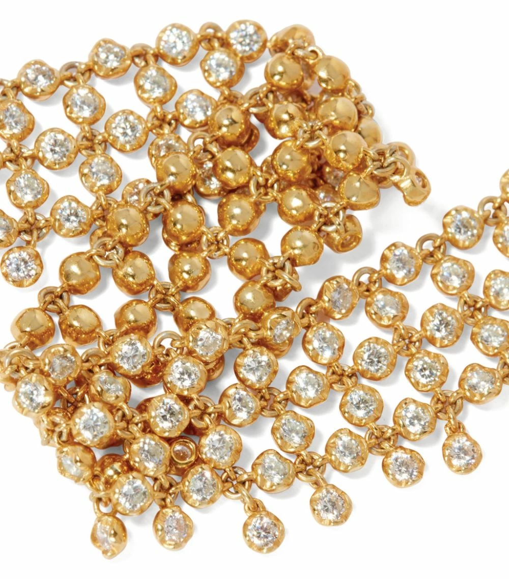 Serving as a reminder to protect and preserve our oceans, Annoushka’s Lattice collection is made up of pieces that resemble life beneath the waves. Inspired by the webbed framework of netting, this bracelet sees glistening diamonds and 18-karat yellow gold make up the interwoven chain-link design that wraps around your wrist in a fluid silhouette.
