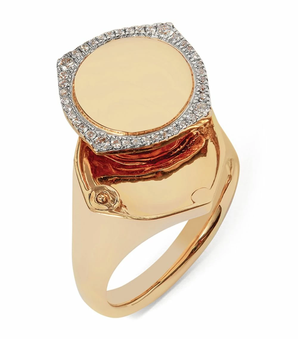 Annoushka Yellow Gold and Diamond Lovelocket Signet Ring Rings
