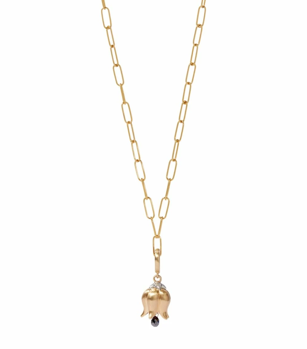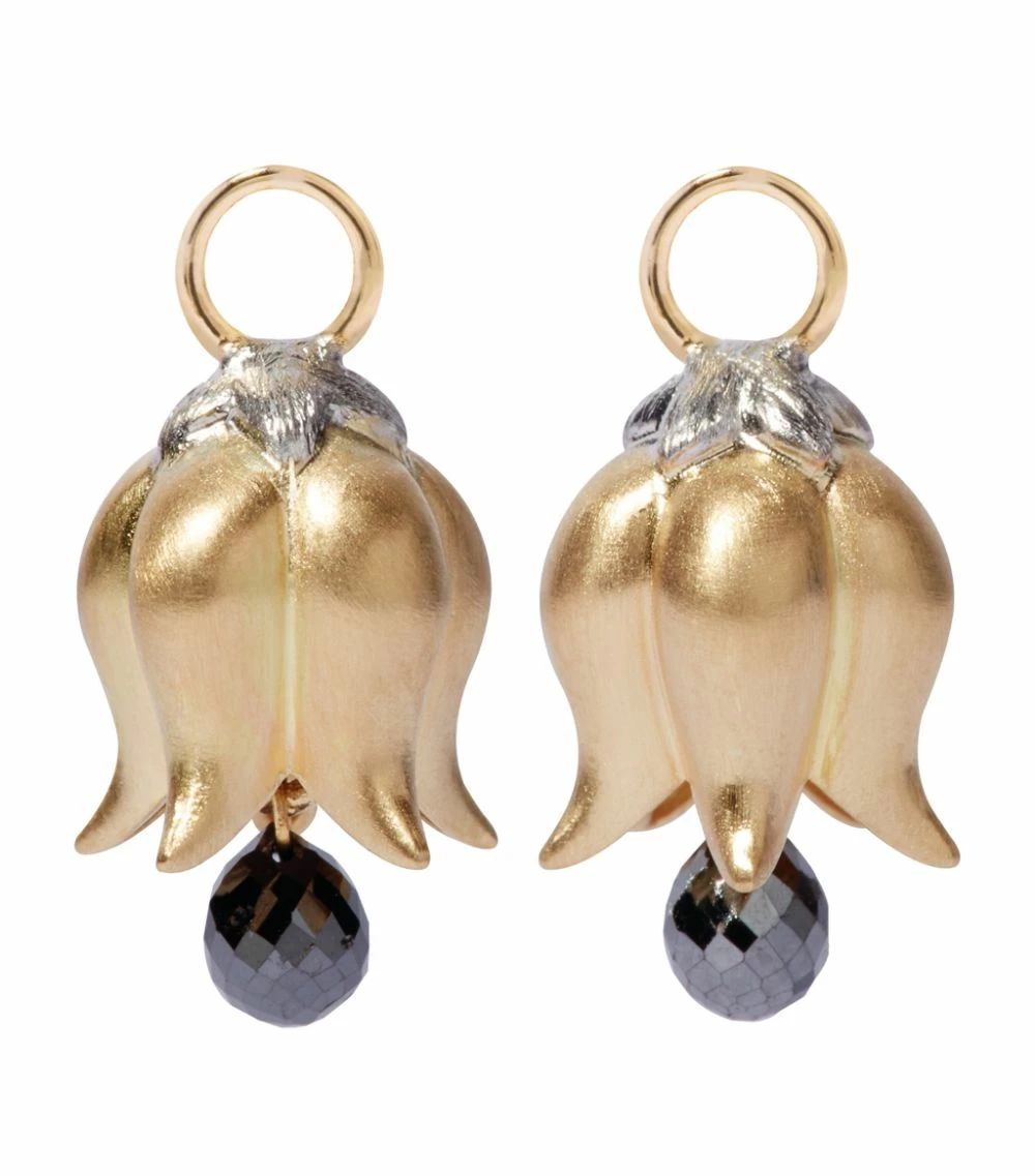Inspired by Annoushka’s love of nature and colour, these dainty earrings adopt a sweet tulip silhouette, revealing two miniature freshwater white pearls within the downward blooms. Set in 18-karat yellow gold for complete romanticism, the interchangeable design is made to be worn alone or stacked with alternative hoops and drops.