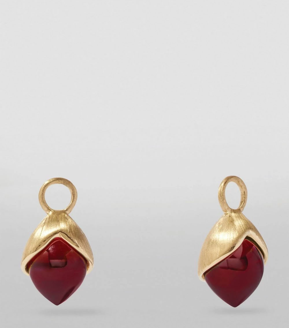 These charming 18-karat yellow gold and garnet earring drops from Annoushka are designed to be strung onto the brand’s hoops to suit your mood. The mix-and-match range is inspired by Annoushka Ducas’ love of colour and nature, as well as the treasure chest of seeds and beads amassed during her travels to Africa – why not invest in all three pairs to start a collection of your own?