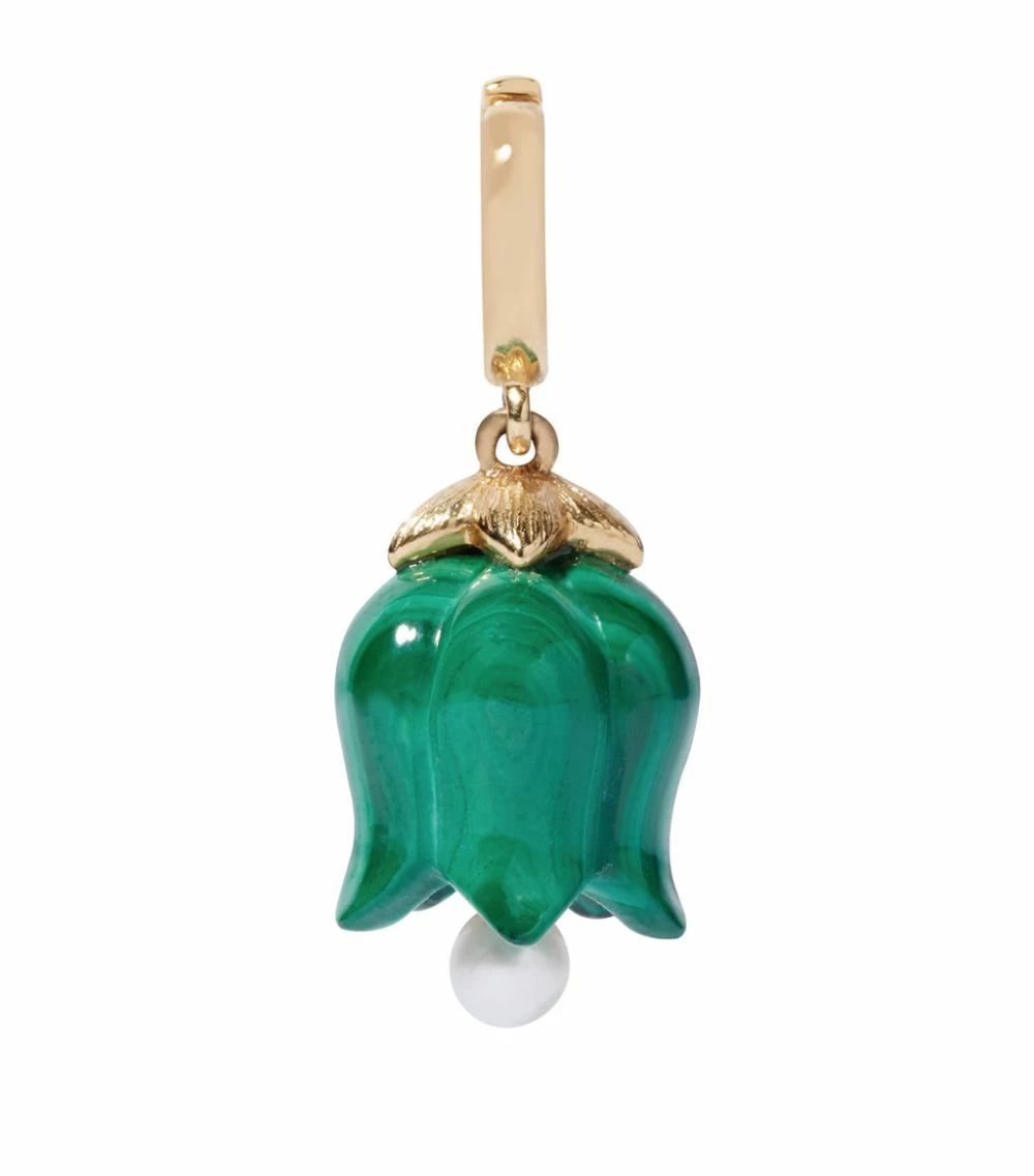 Tulips are the flower that welcomes spring with open arms, admired by many for its symbolic links to freshly cut grass and newborn baby lambs. This charm seeks to capture these feelings of hope and joy, crafted in 18-karat yellow gold with malachite resembling the petals and a delicate freshwater pearl dangling beneath. Designed with jump rings on top to be looped through hoop earrings, they add an extra special finishing touch to the jeweller’s Eclipse Fine Hoops or iconic Eclipse Porcupine Hoop Earrings.