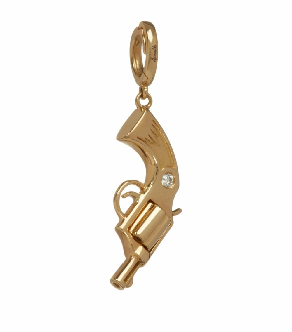 Drawing on the gothic influences that inform the life of Susie Cave and lyrics from her husband Nick’s songs, Annoushka’s collaboration with The Vampire’s Wife sees quirky motifs, mythology and the macabre mingle, realised in glistening 18-karat gold. Named for the song by the same name, the Deanna charm takes the form of a pistol complete with spinning barrel and scintillating diamonds.