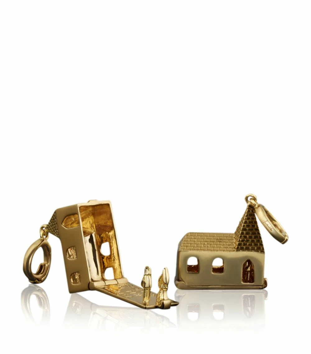 Drawing on the gothic influences that inform the life of Susie Cave and lyrics from her husband Nick’s songs, Annoushka’s collaboration with The Vampire’s Wife sees quirky motifs, mythology and the macabre mingle, realised in glistening 18-karat gold. Named after the track by the same name, the God Is In The House charm features a replica of the Surrey woodland church where the couple wed and opens to reveal figures of the bride and groom.