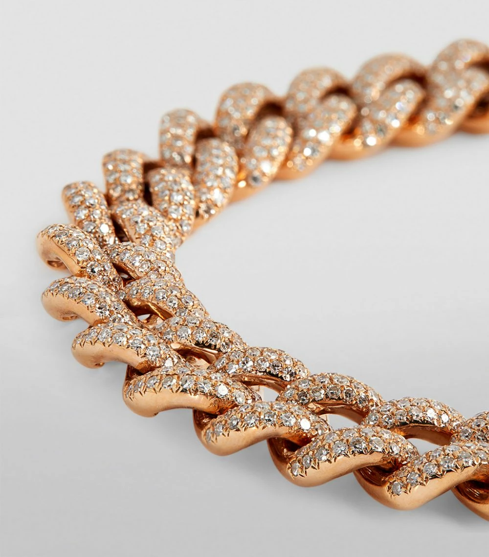 Intricate weaves of rose gold receive a delightful shimmer thanks to 15.8 carats of diamonds.