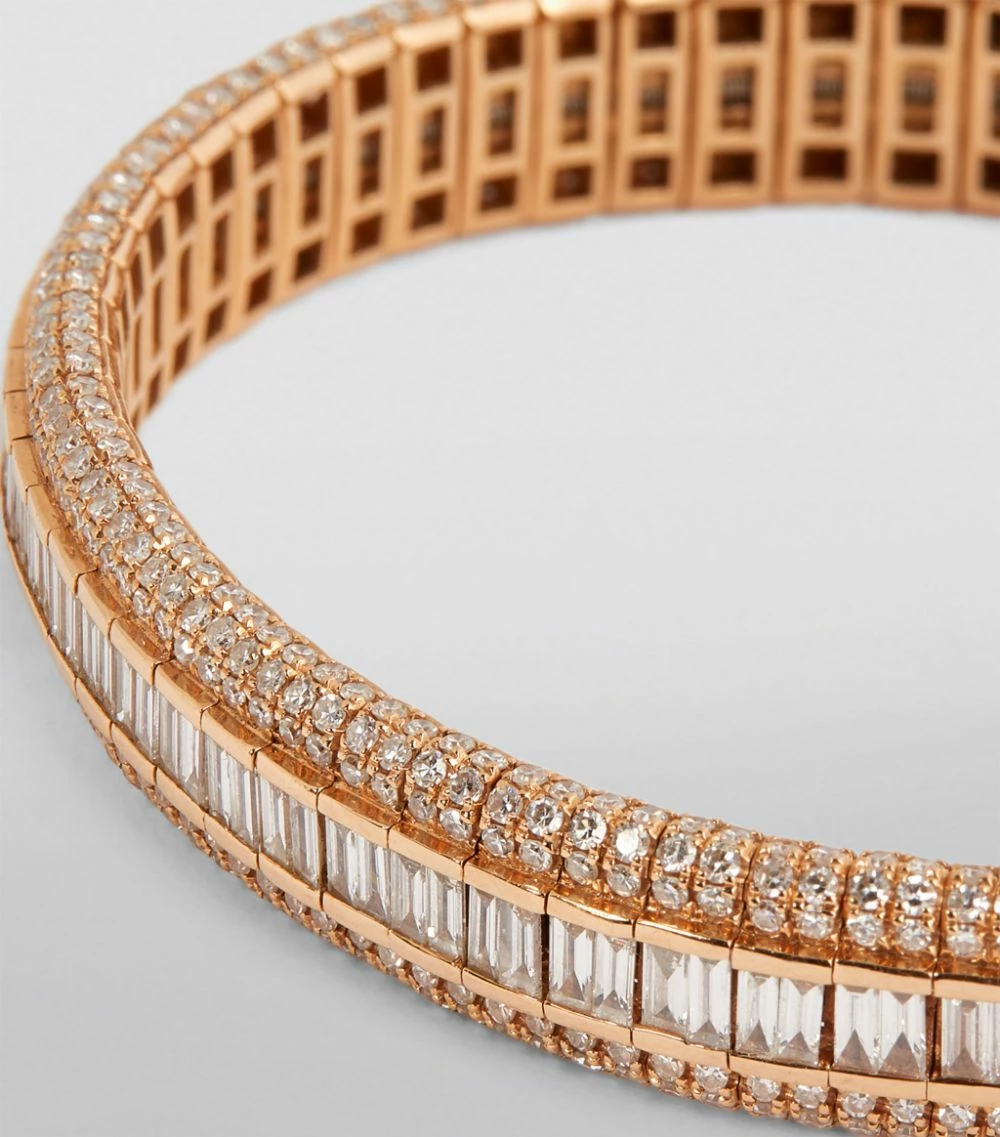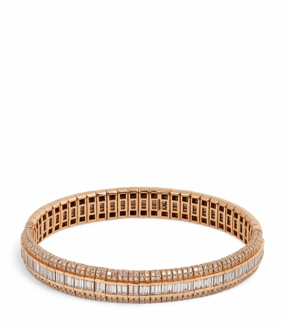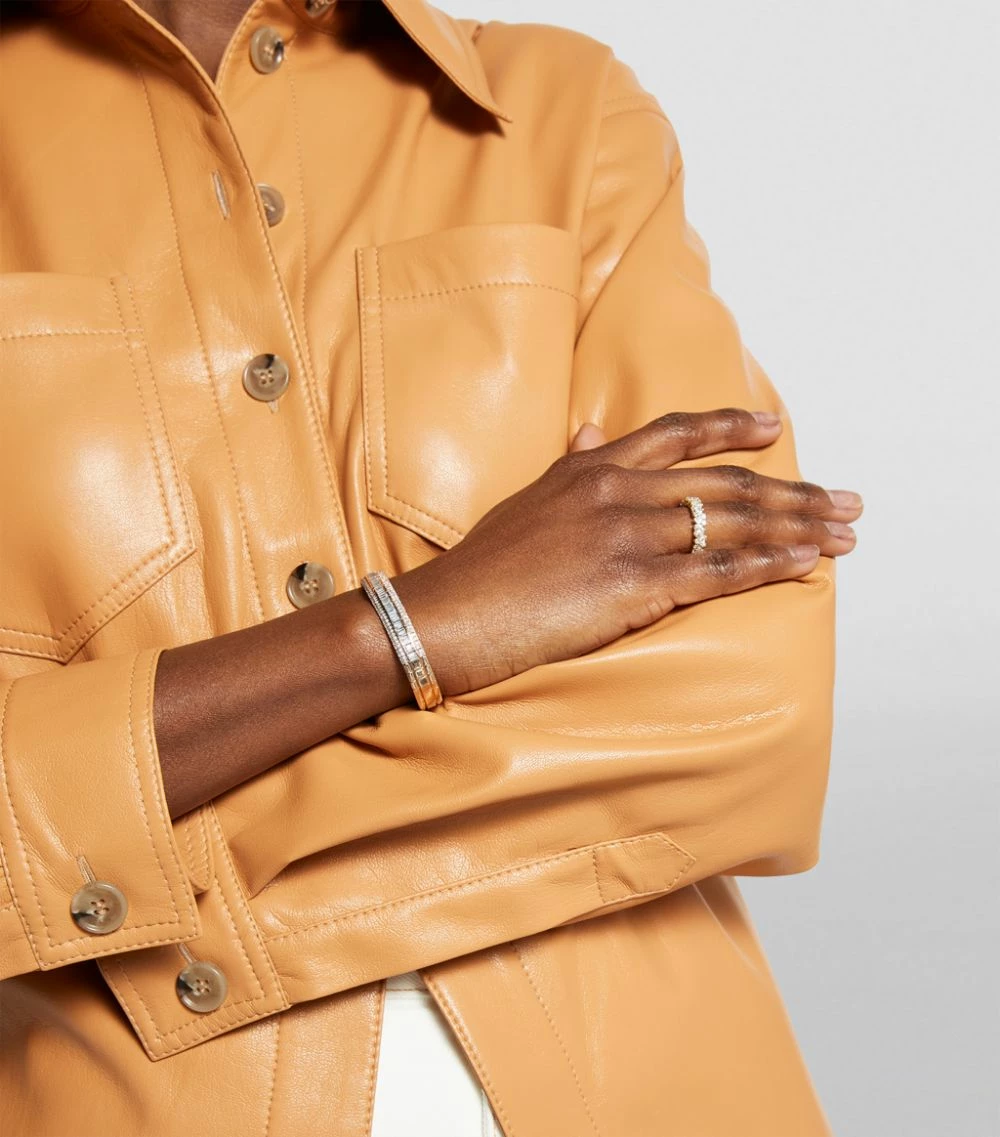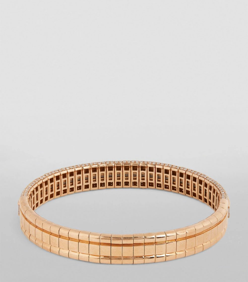 The Scales bracelet from SHAY’s Helix collection is built on a stretchy frame, meaning it slips effortlessly over your hand. It’s a contemporary touch, but one that’s accented by materials and finishes that are timelessly traditional and effortlessly luxurious – 18-karat rose gold and white pavé diamonds, in particular. Each segment is meticulously crafted, with half covered in the twinkling pavé and the other showcasing simply impeccably smooth gold.