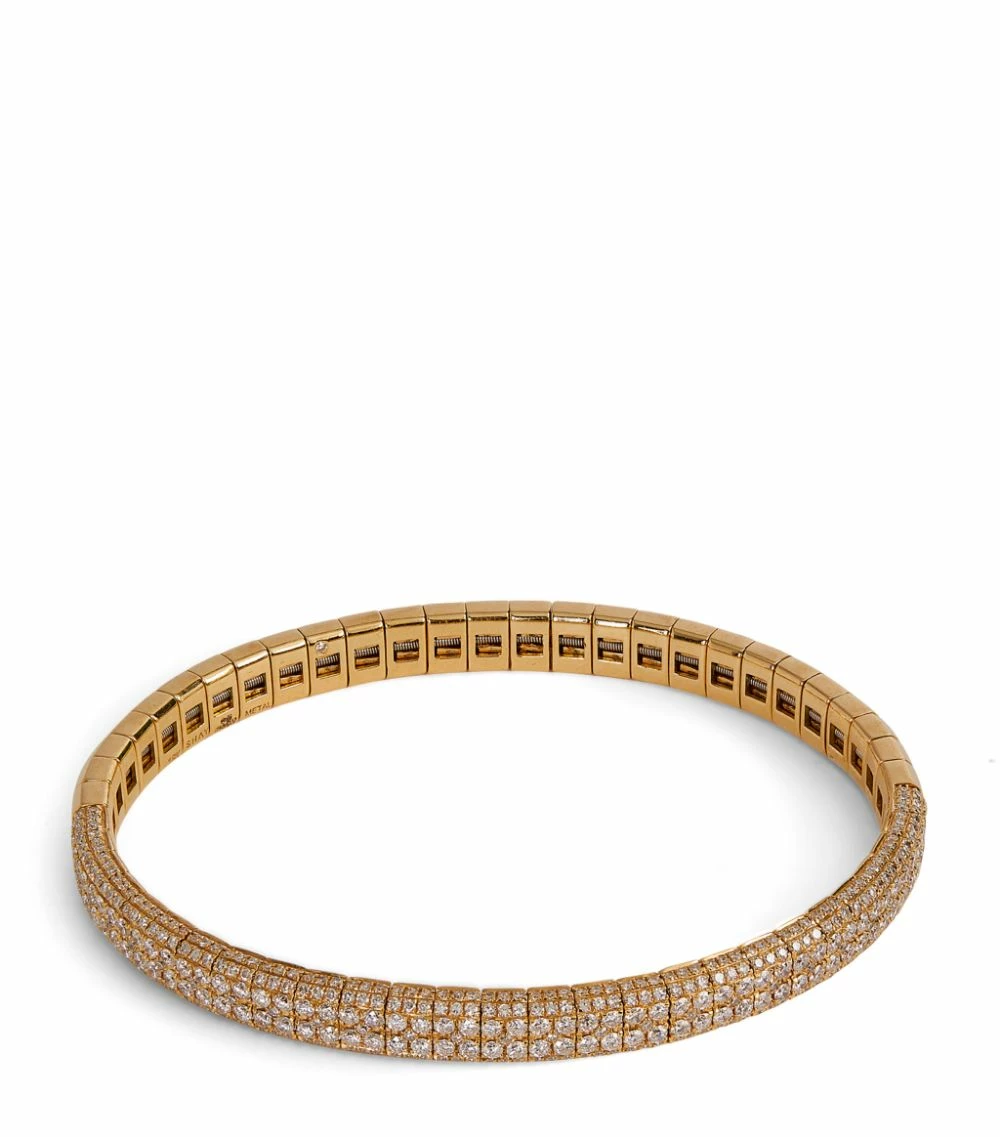Diamond-drenched pieces are integral to every collection from SHAY, the Los Angeles-based jewellery brand founded by Ladan and Tania Shayan, and the Helix stretch bracelet is equally dependent on the dazzle of this most desirable gemstone. Cast in 18-karatrose gold, the piece keeps its seamless illusion thanks to a stretch design consisting of countless fluid links – half of which are embellished and the other half left perfectly polished.