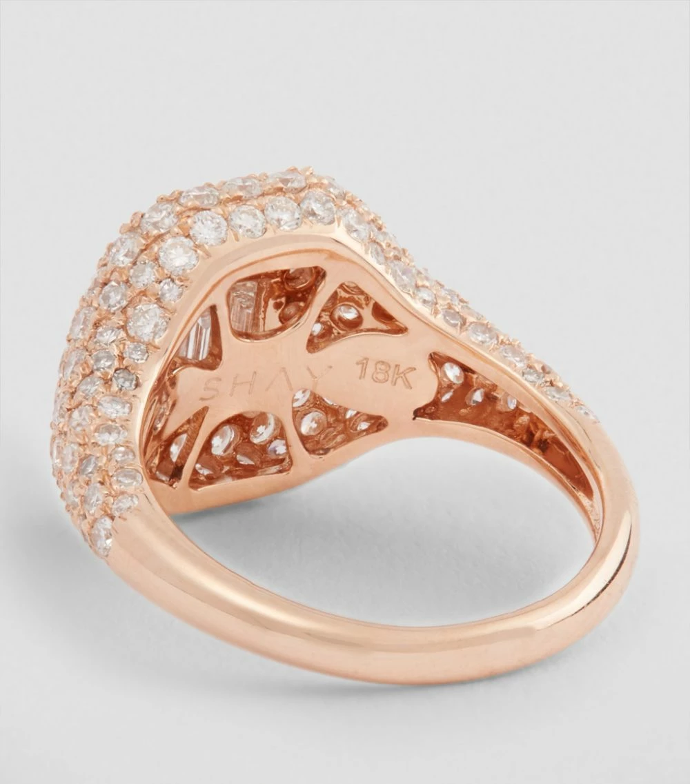 The perfect marriage of contemporary and traditional, Shay’s New Modern collection of past-meets-present accessories offers an intergenerational take on classic stones and precious metals: something mother-and-daughter duo Ladan and Tania Shayan set out to achieve when they co-founded their luxury fine jewellery label in 2002. Crafted from 18-karat rose gold, the Pave pinky ring delivers a new, less aggressive kind of elegance for the woman of today thanks to its tonal scattering of stones and an impressive geometric-cut diamond duo to the centre.