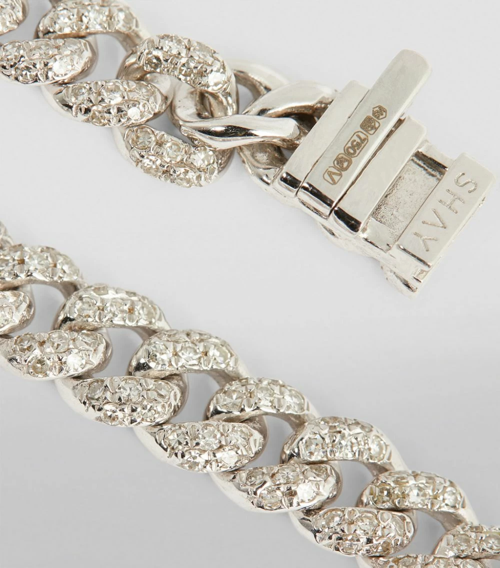 SHAY strikes the perfect balance between effortless and glamorous with its coveted Links bracelets, which are designed to layer together on the wrist in a custom curation. This mini Links bracelet is a more delicate offering from the West Coast label; cast in 18-karat white gold, the slender chain is overcome with the glow of white diamonds that will continue to mesmerise through every occasion.