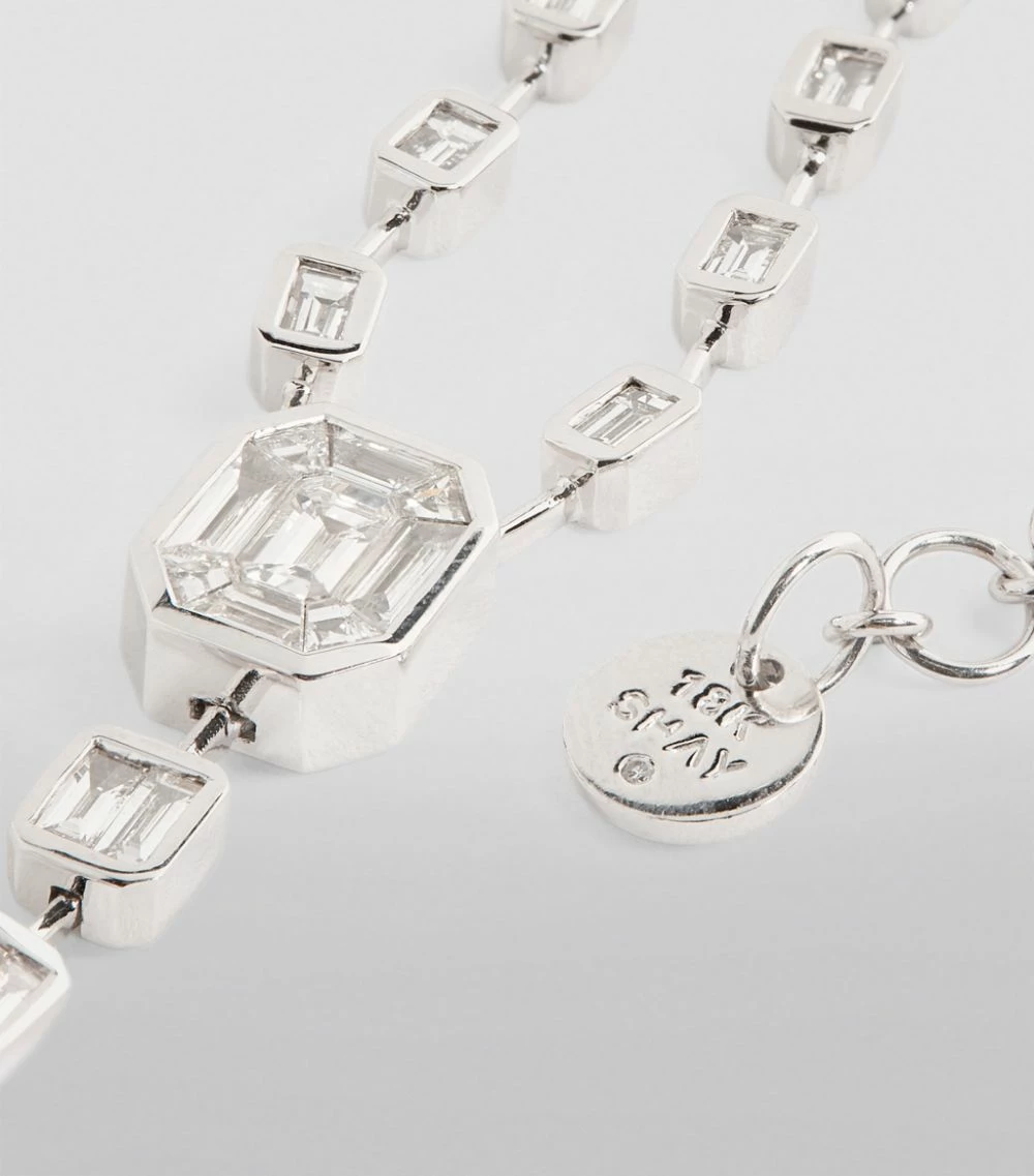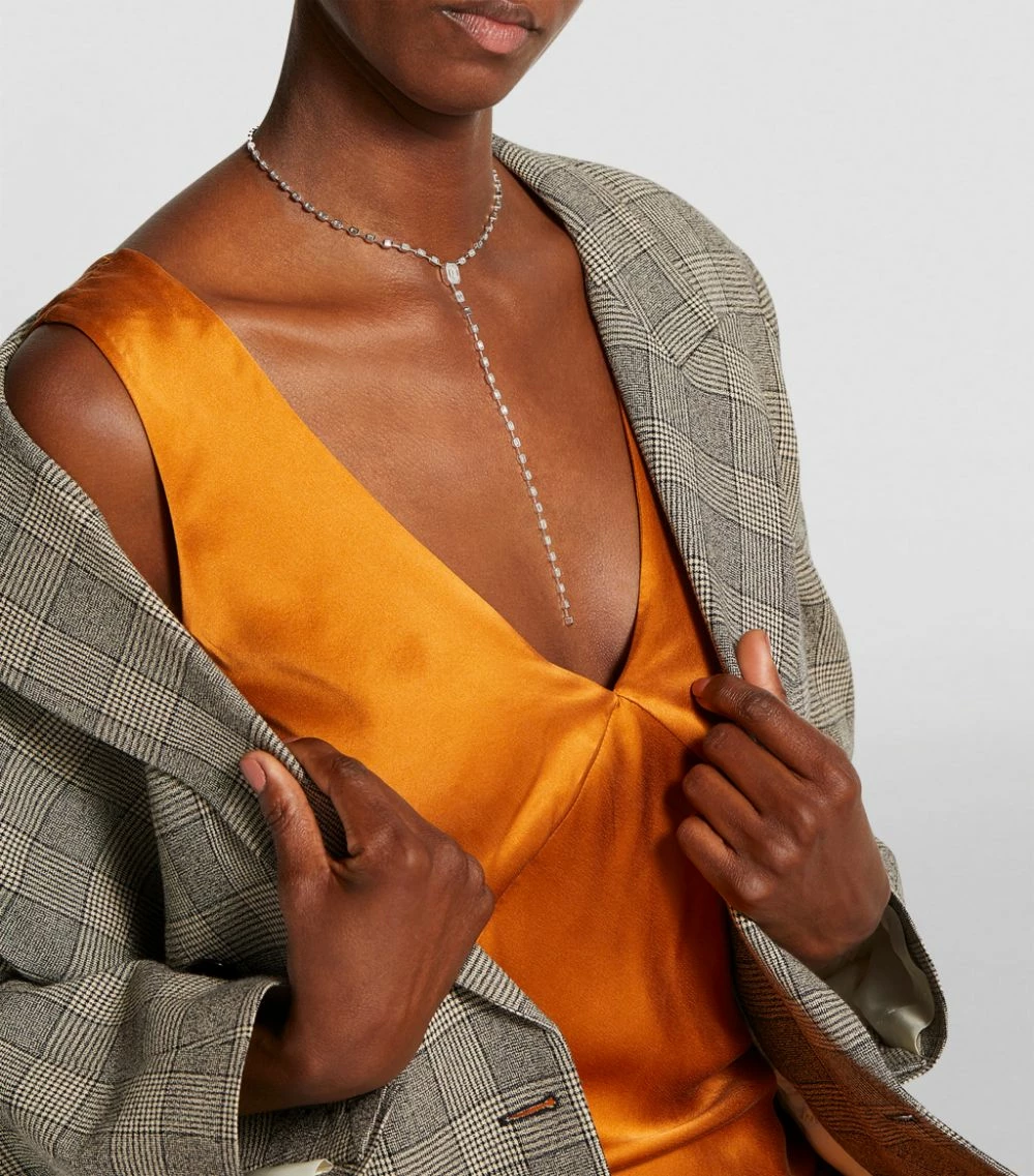 Achieving a harmonious balance between delicate, feminine details and angular geometry, SHAY’s Sticks & Stones collection is testament to its co-founders Laden and Tania Shayan’s love of the Art Deco movement. Sparkling white diamonds fall elegantly from the 18-karat white gold chain of this necklace, cascading down the décolletage into a vertical line of unrivalled radiance.